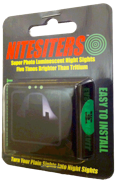 provide many hours of luminosity. Tritium sights are popular, but they are very expensive and almost impossible for the user to install. They are also dim compared with Nitesiters. Tritium sights are visible in total darkness, but can disappear in low to medium ambient light situations. Nitesiters remain visible in all lighting situations. They even improve sighting in broad daylight! Nitesiters are a night sight alternative everybody can afford.