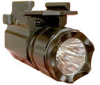 This tactical rail mounted taclight uses a spring loaded attachment mechanism to attach in literally seconds! Left/Right thumb switch lets you choose between ‘On’ mode and blinding strobe mode. Uses the new CREE XP-G RD technology for blinding bright light in a small compact frame.